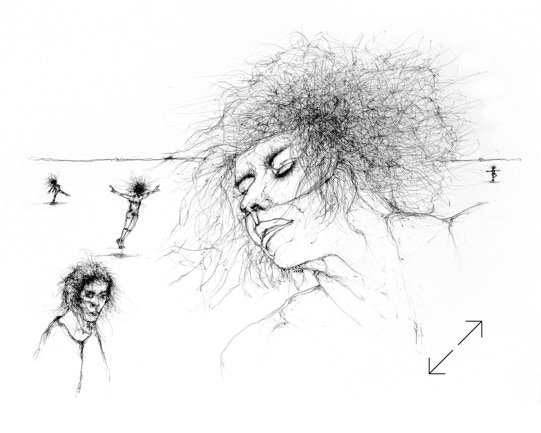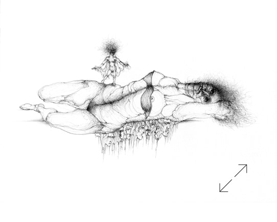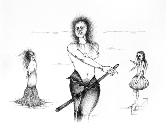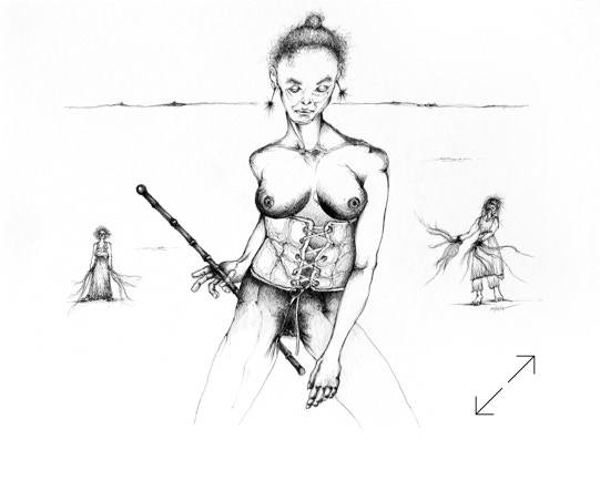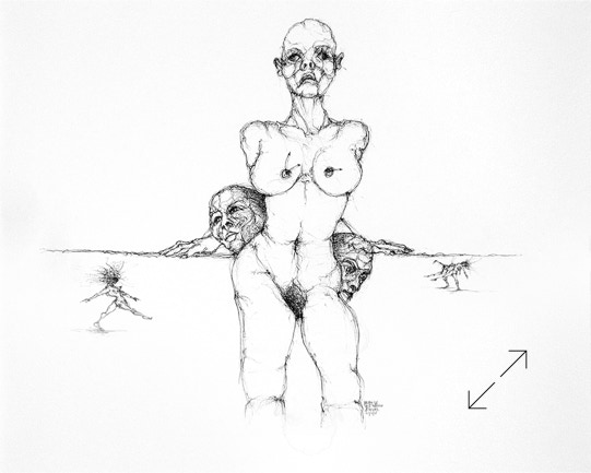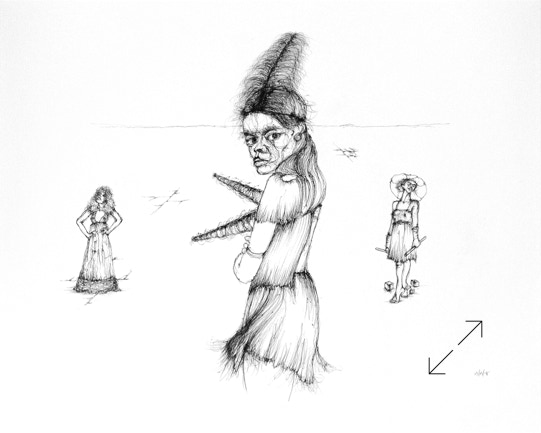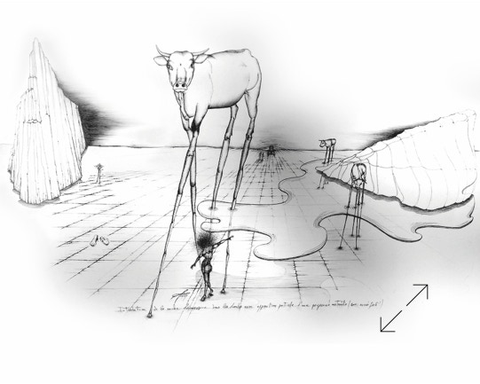 d’une paysanne naturiste (2004, année Dali) ; stylo bille sur carton ; 70 x 100 cm .