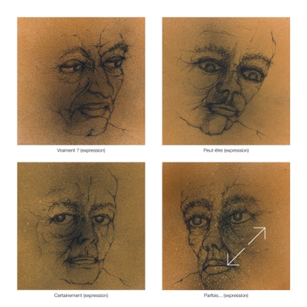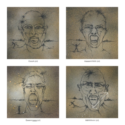 Pigments acryliques en bombe aérosol, crayon pierre noir,