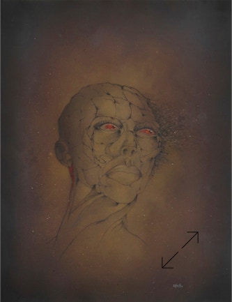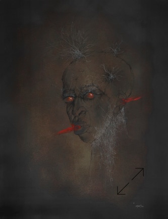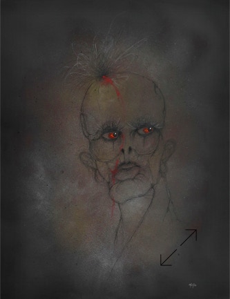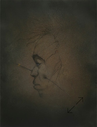 Pigments acryliques en bombe aérosol, mine de plomb, crayon pierre noir, crayons de couleurs, gouache, sur papier aquarelle Montval 300 gr ; 50 x 65 cm ; 2020.