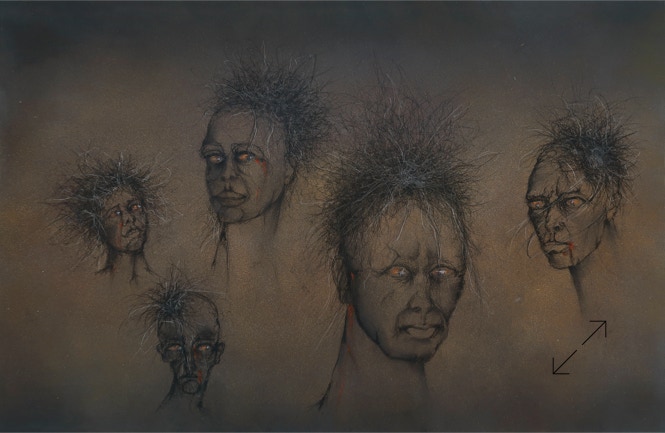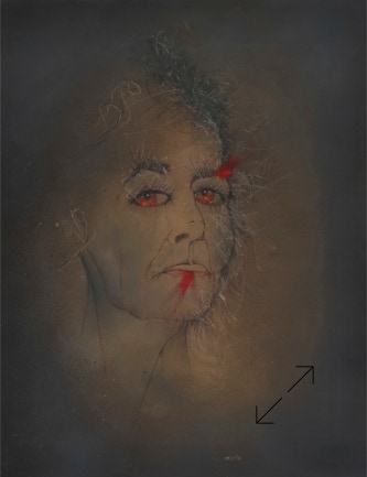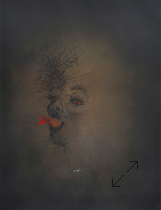 Pigments acryliques en bombe aérosol, mine de plomb, crayon pierre noir, crayons de couleurs, gouache, sur papier aquarelle Montval 300 gr ; 100 x 65 cm ; 2020.